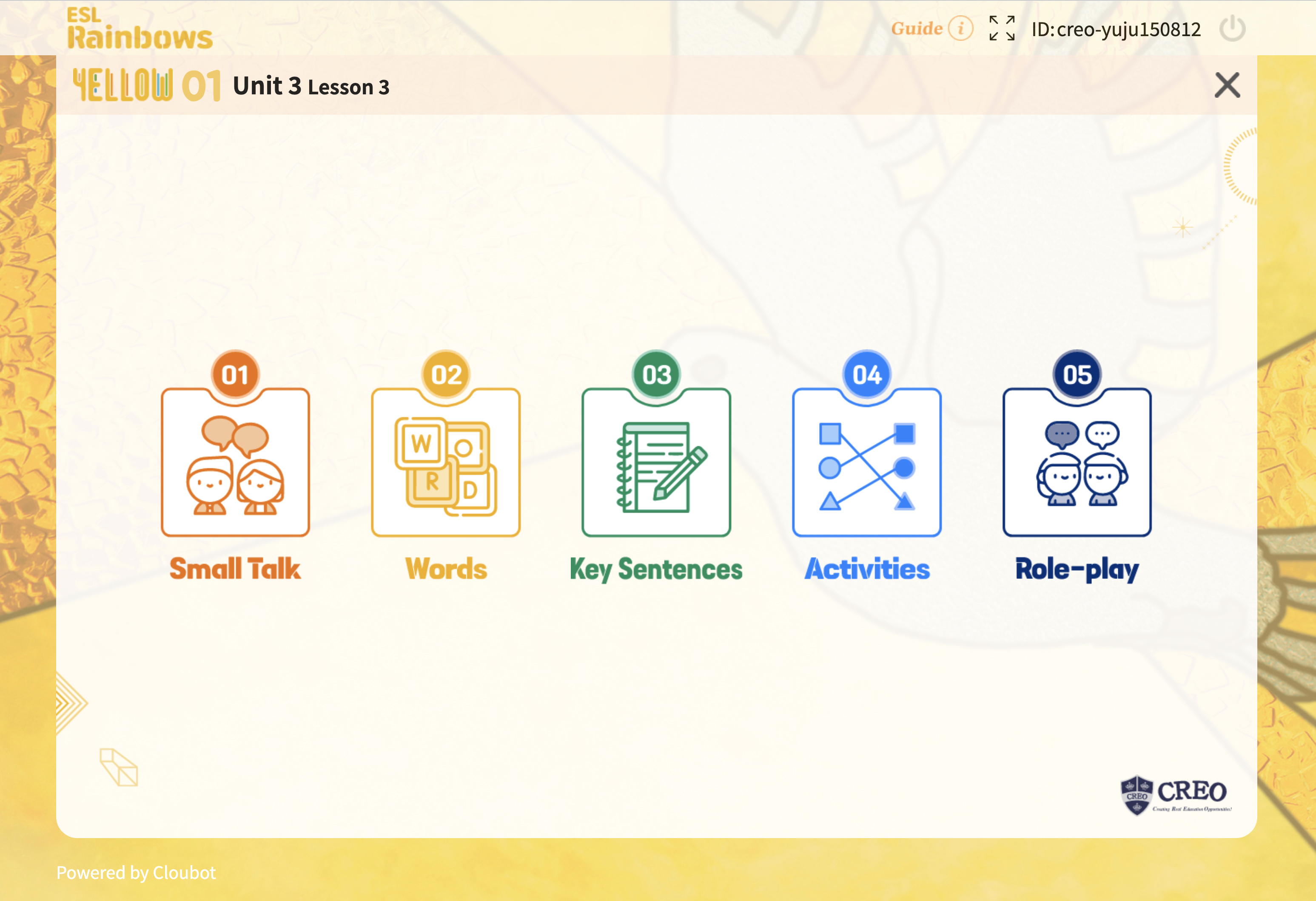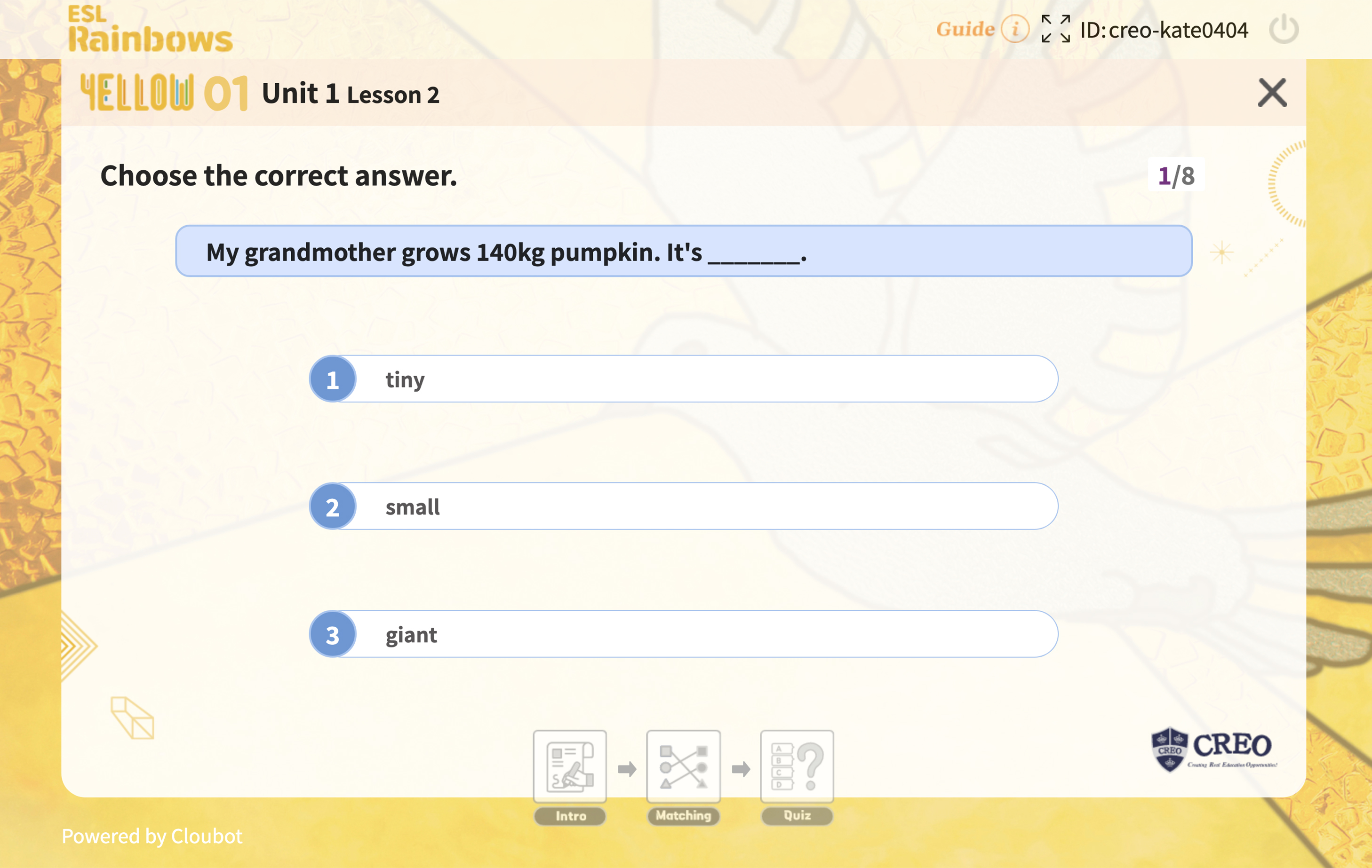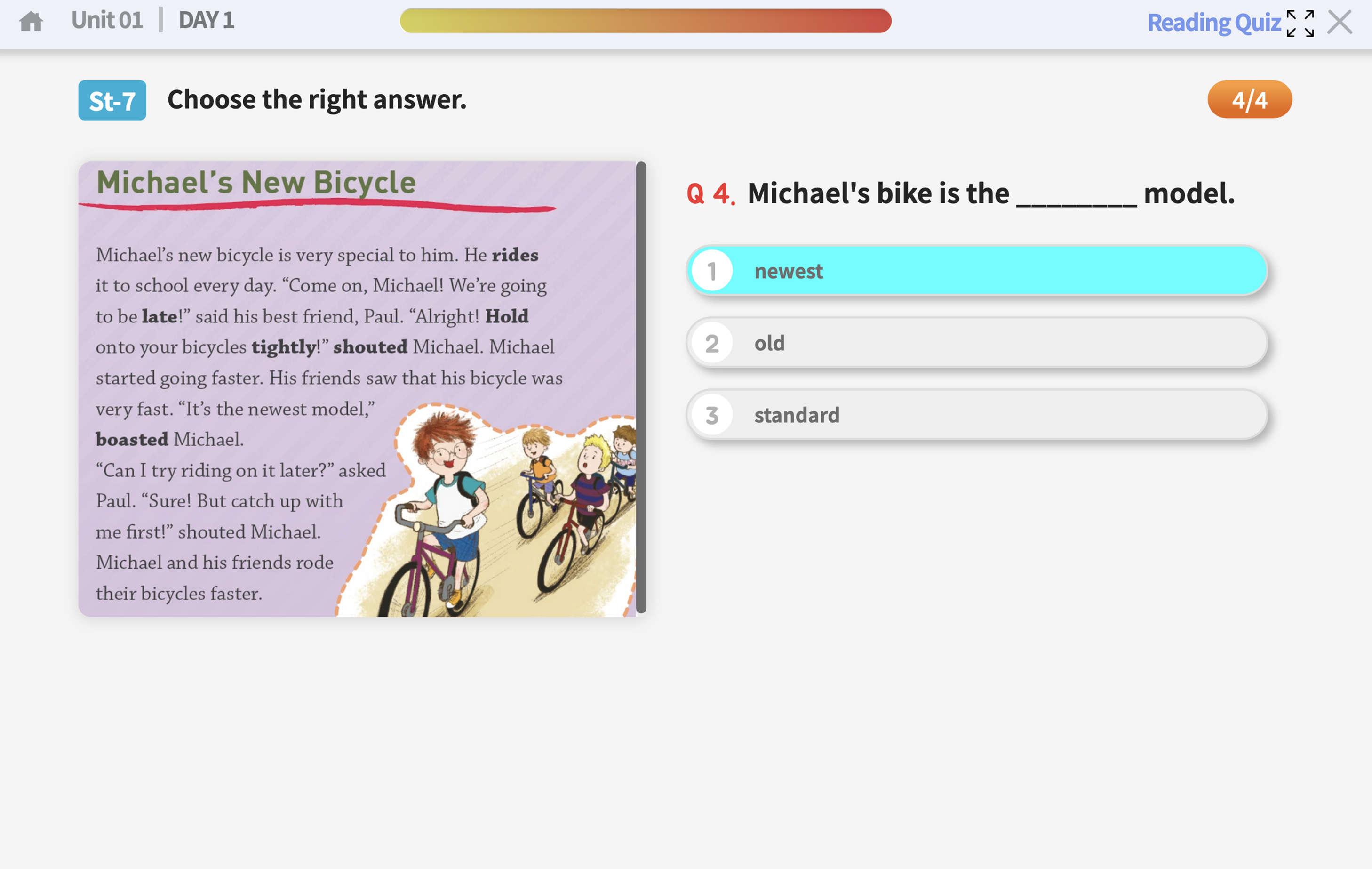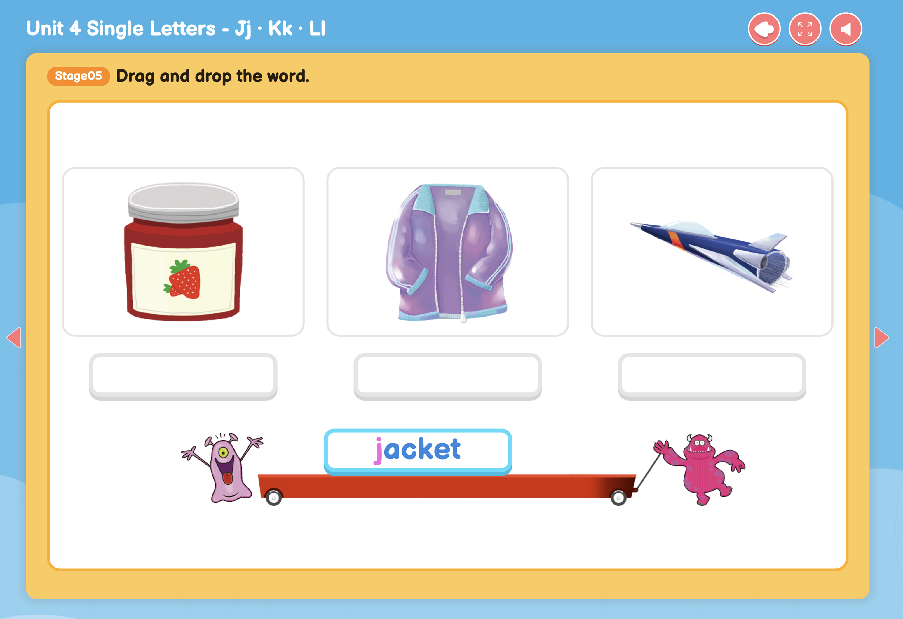 어휘에 대한 온라인 학습 단계이며 이미지와 단어를 매칭 하며 학습 한 후 Word Practice 와 Typing 훈련을 통해 어휘를 익힐 수 있습니다. 레벨에 따라 Word Game과 Quiz 등을 추가 할 수 있습니다.