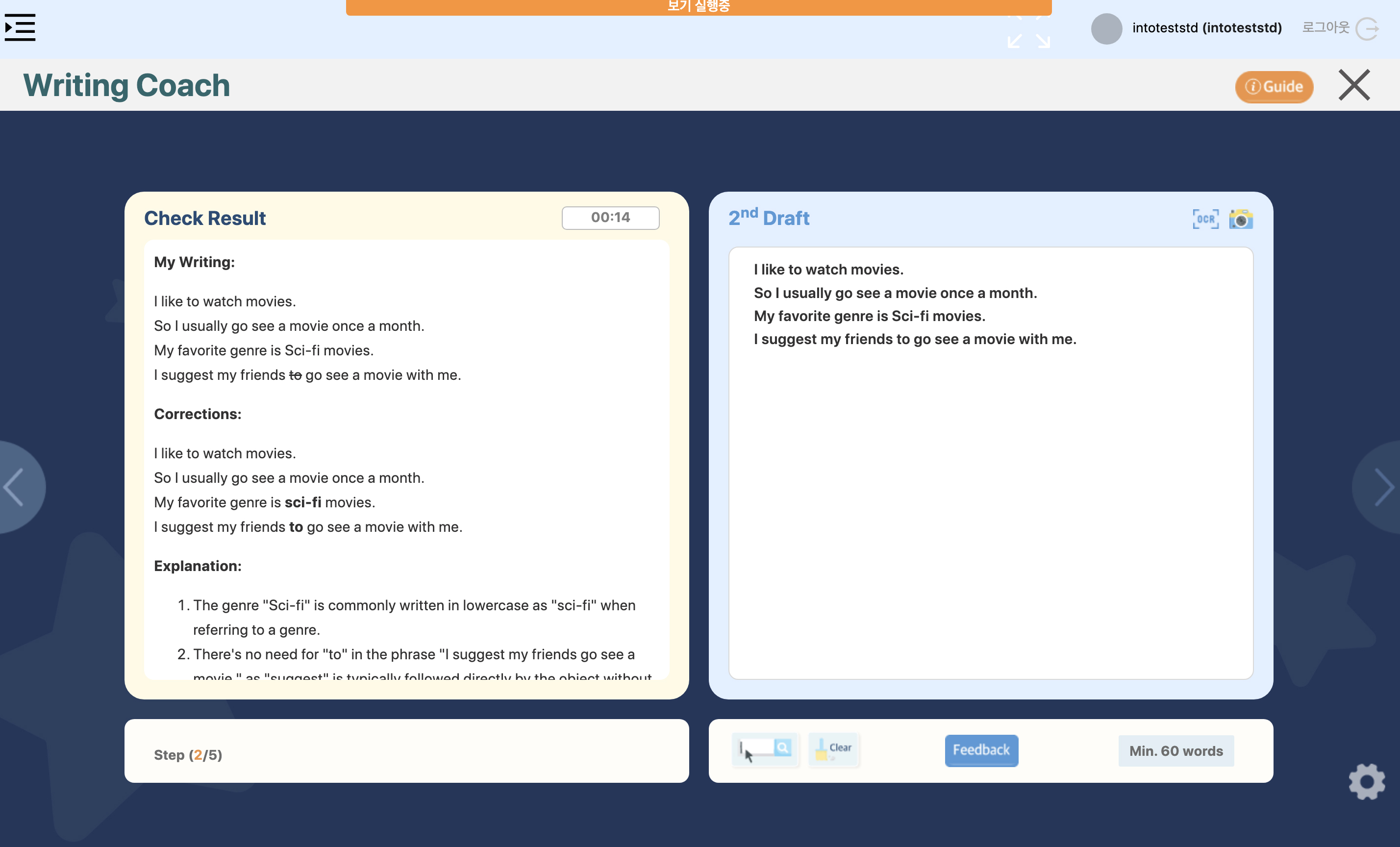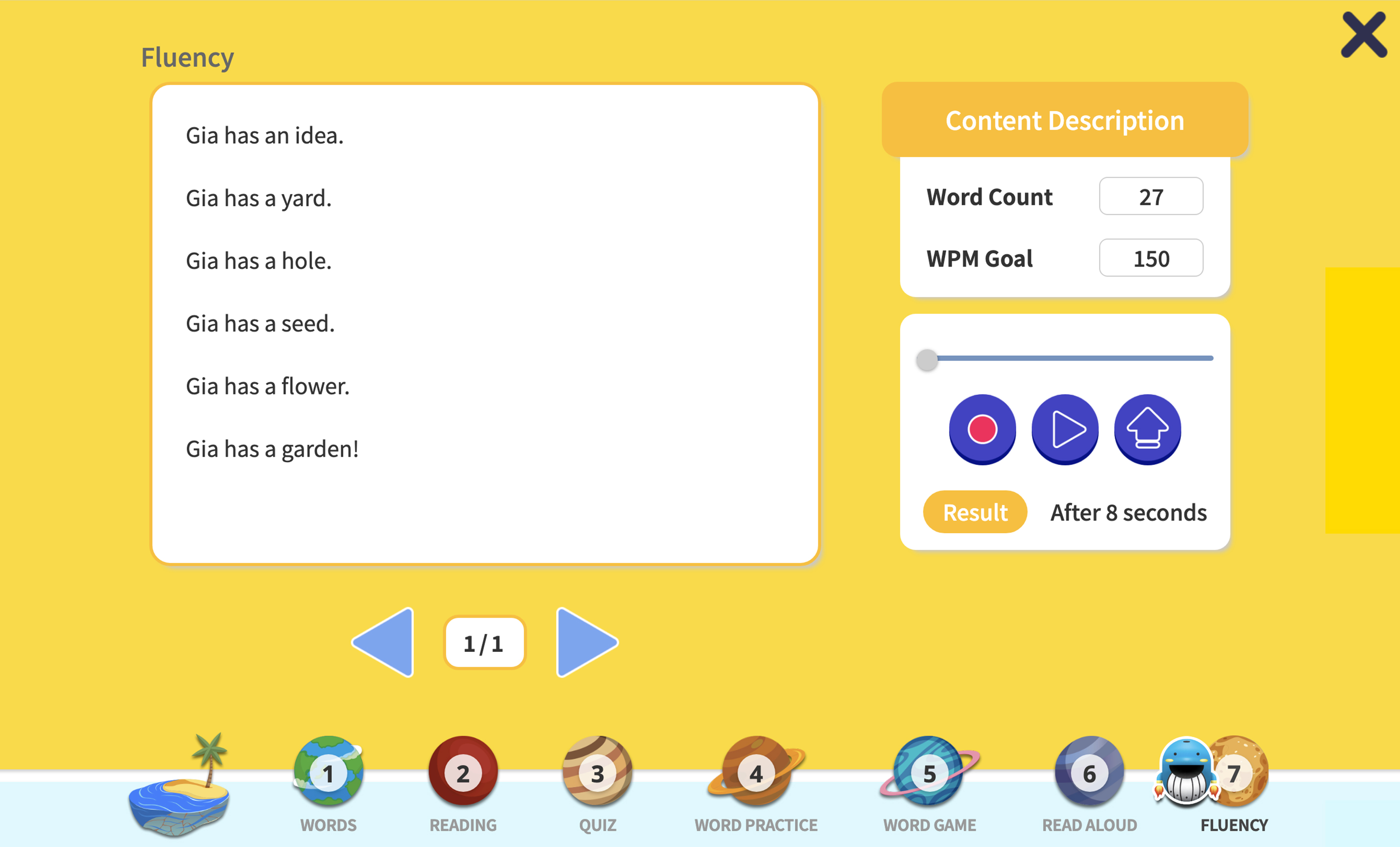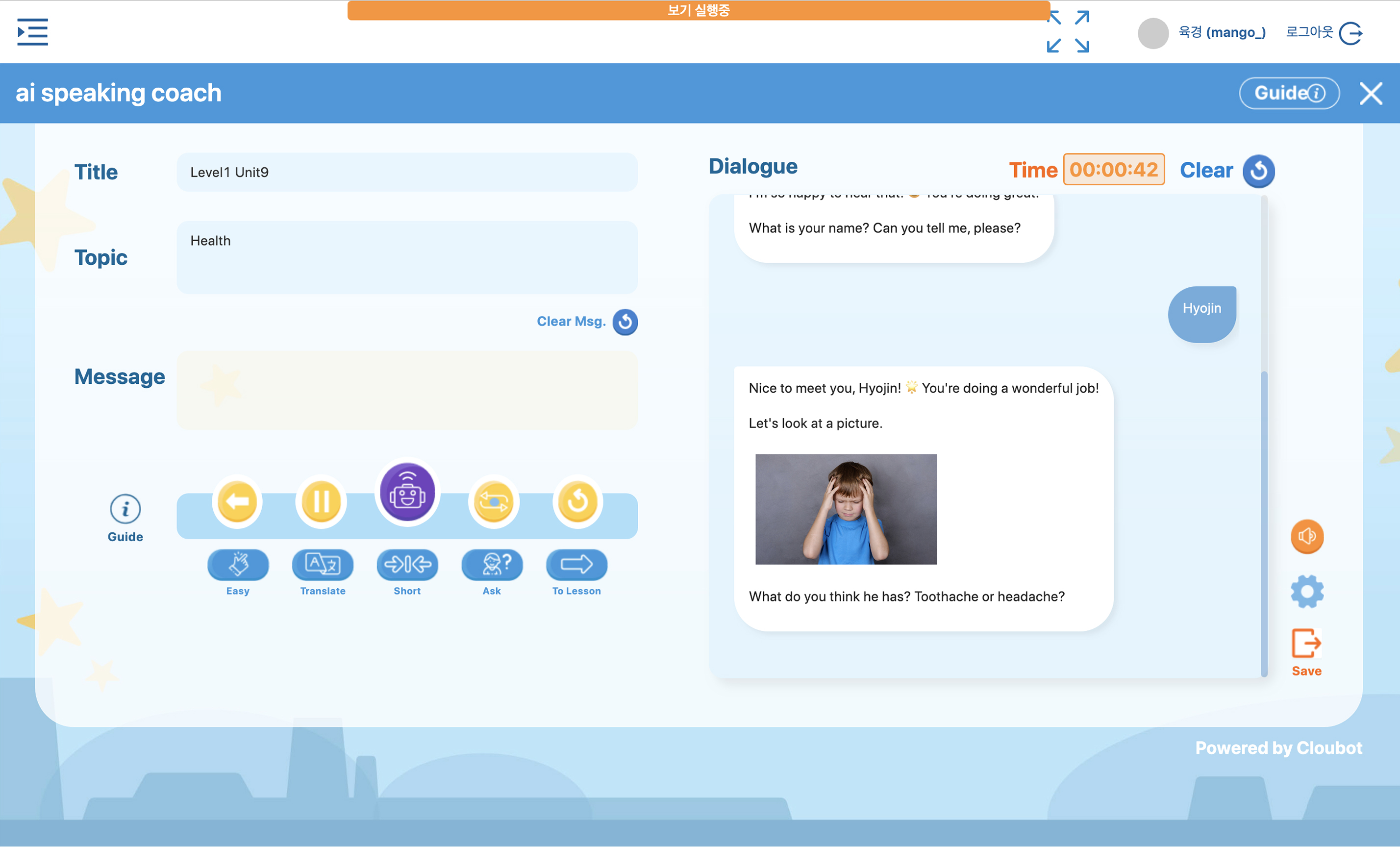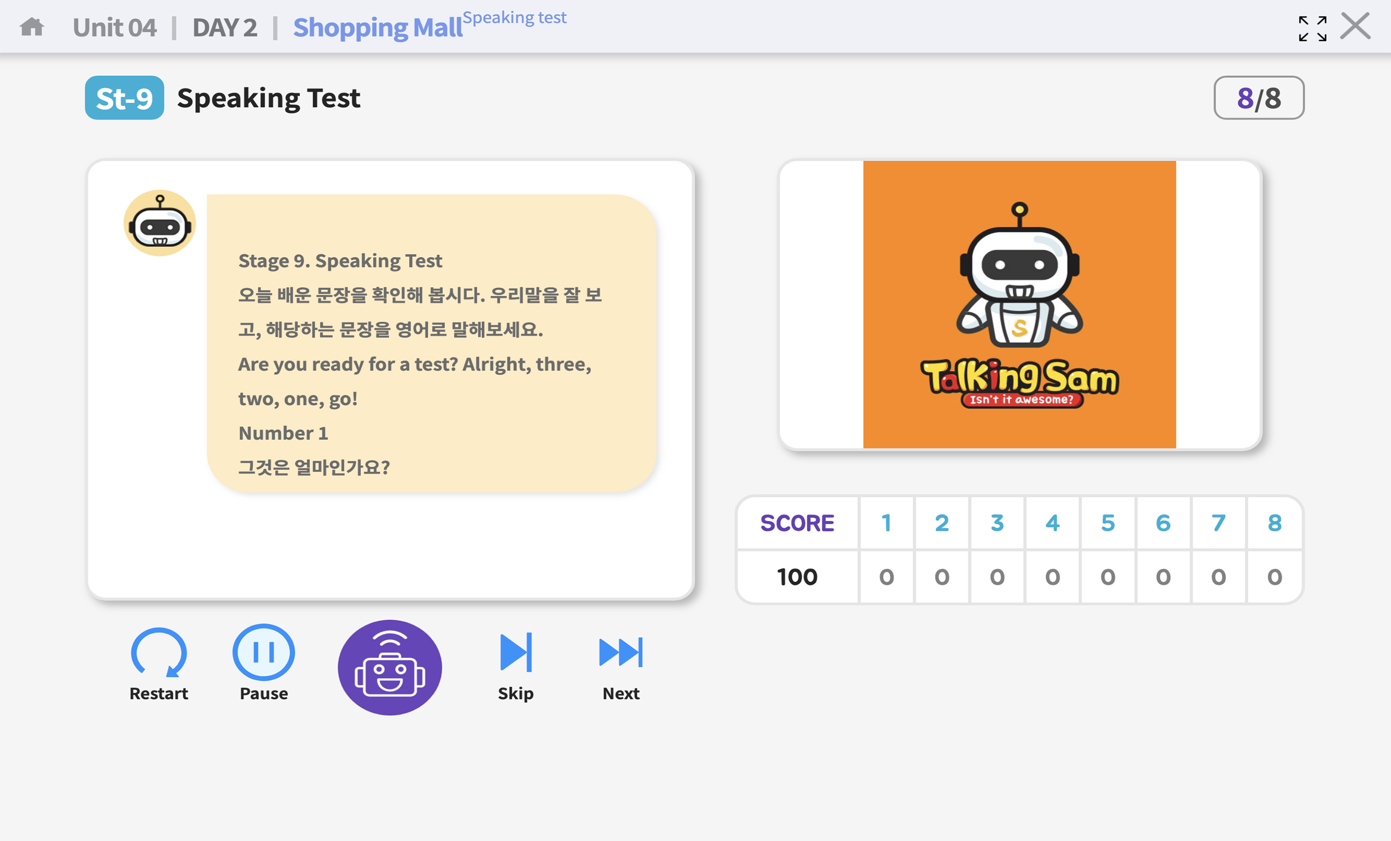 AI 기능을 활용한 학습 툴로 AI 선생님과 롤 플레이를 하거나 학습을 진단하며, 쓴 글에 대해 첨삭하는 신개념 인공지능 학습 툴을 제공합니다. 또한 Fluency (Recording) 학습으로 리딩 지문을 얼마나 정확하게 읽는지 WPM과 정확성에 대해 수치로 진단 합니다.